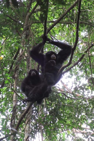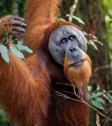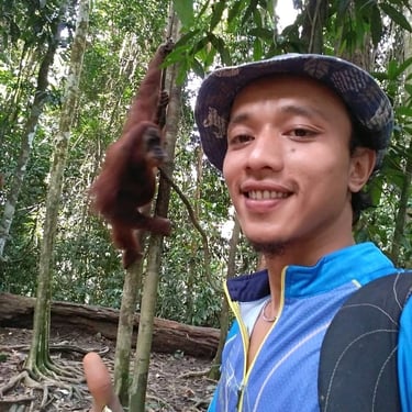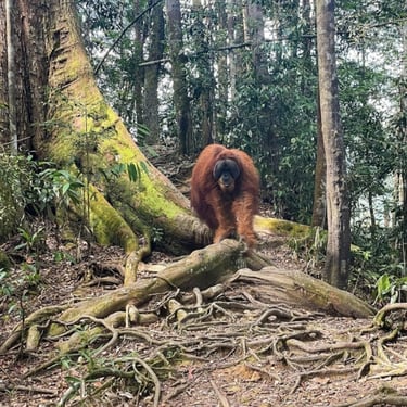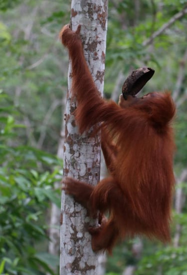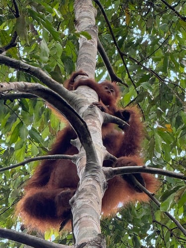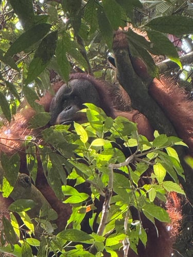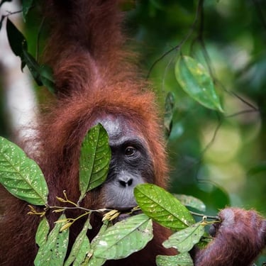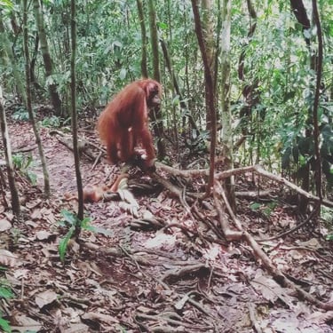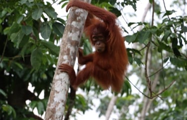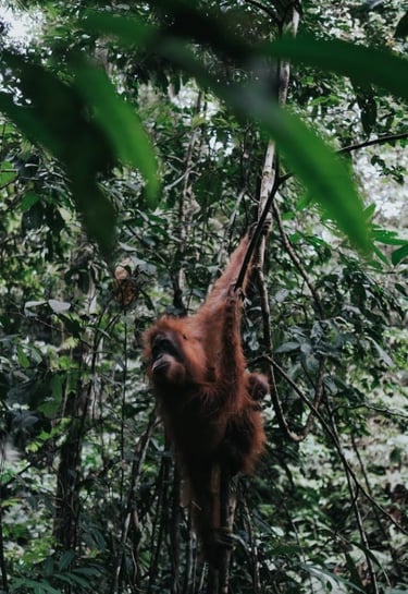 Explore orangutan trekking in a lush jungle.